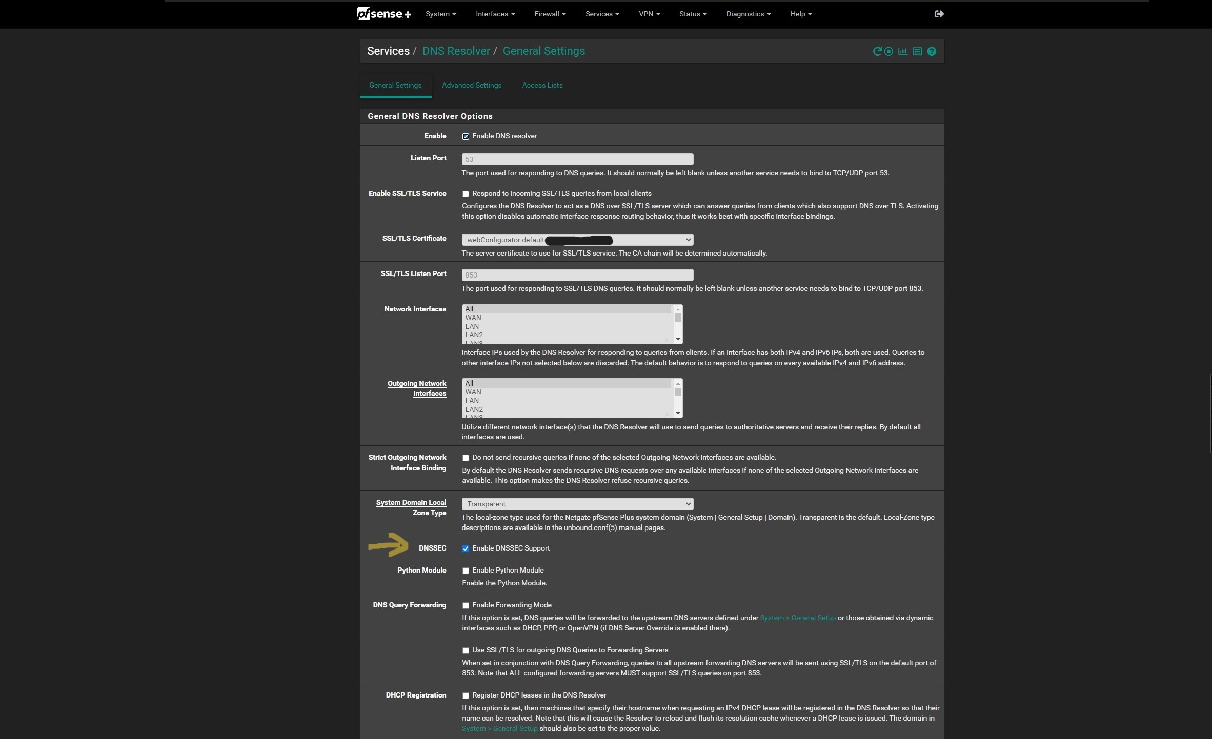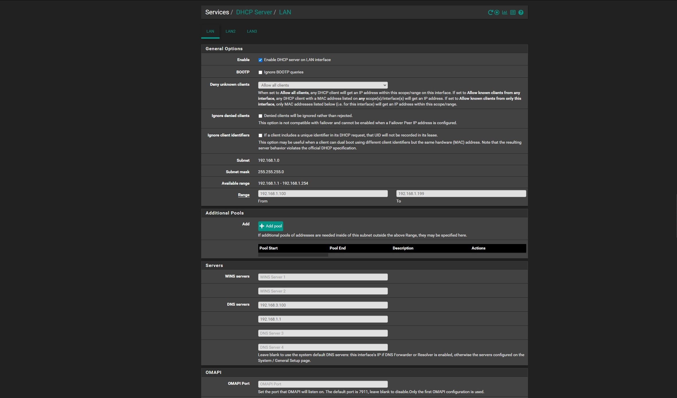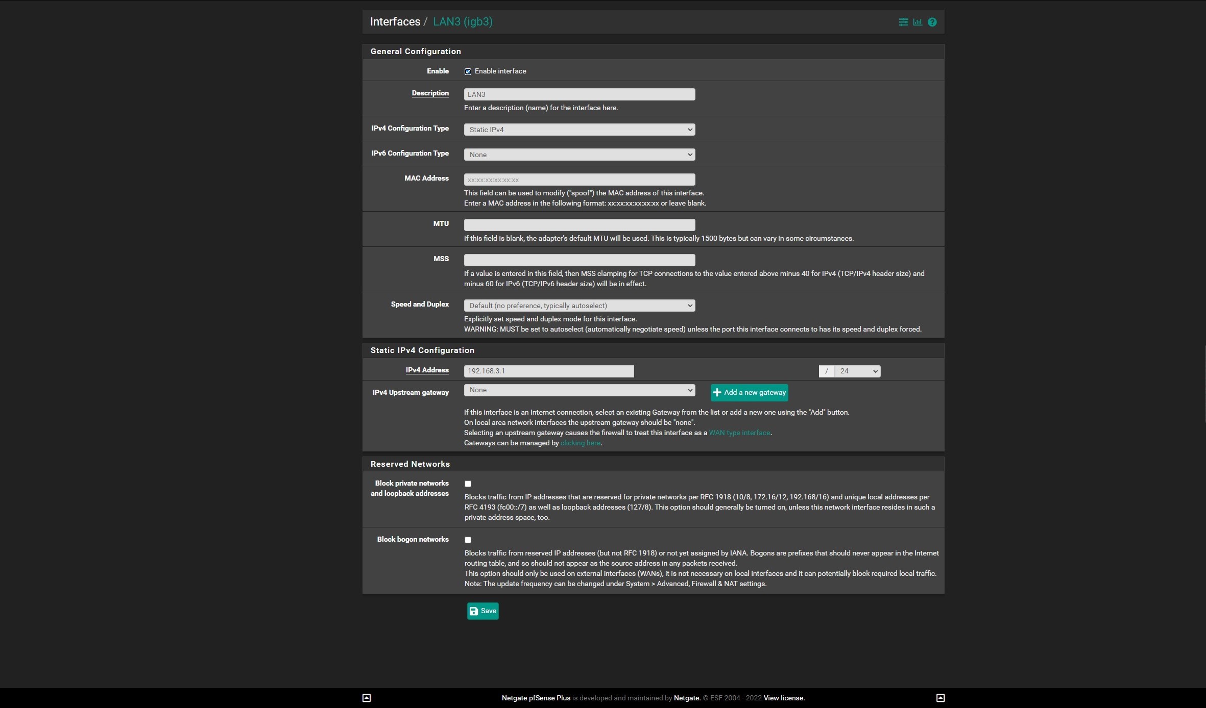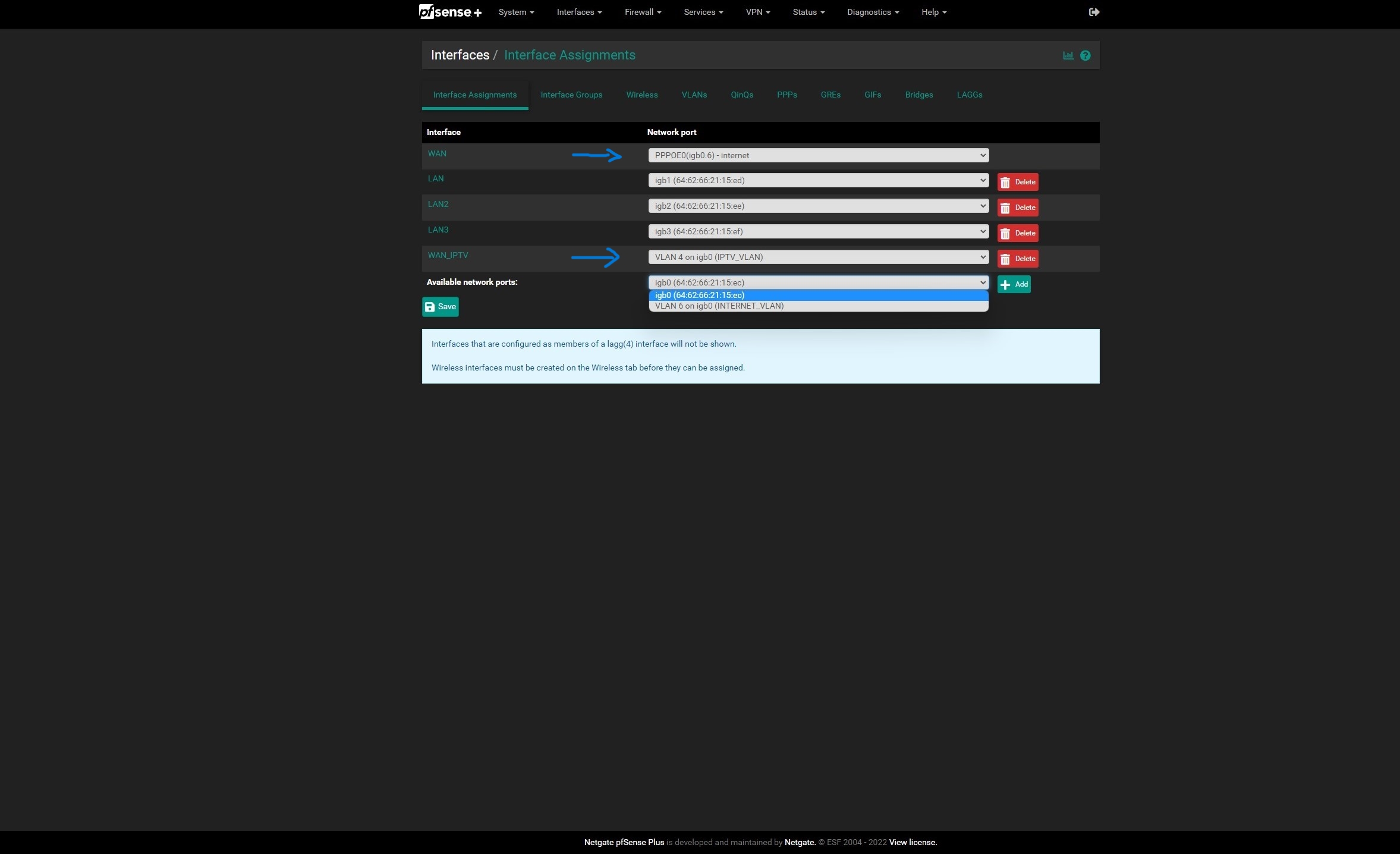 Standaard zijn de Wan(igb0) en Lan(igb1), poorten al actief , lan2(igb2) en lan3(igb3) zijn dat niet.