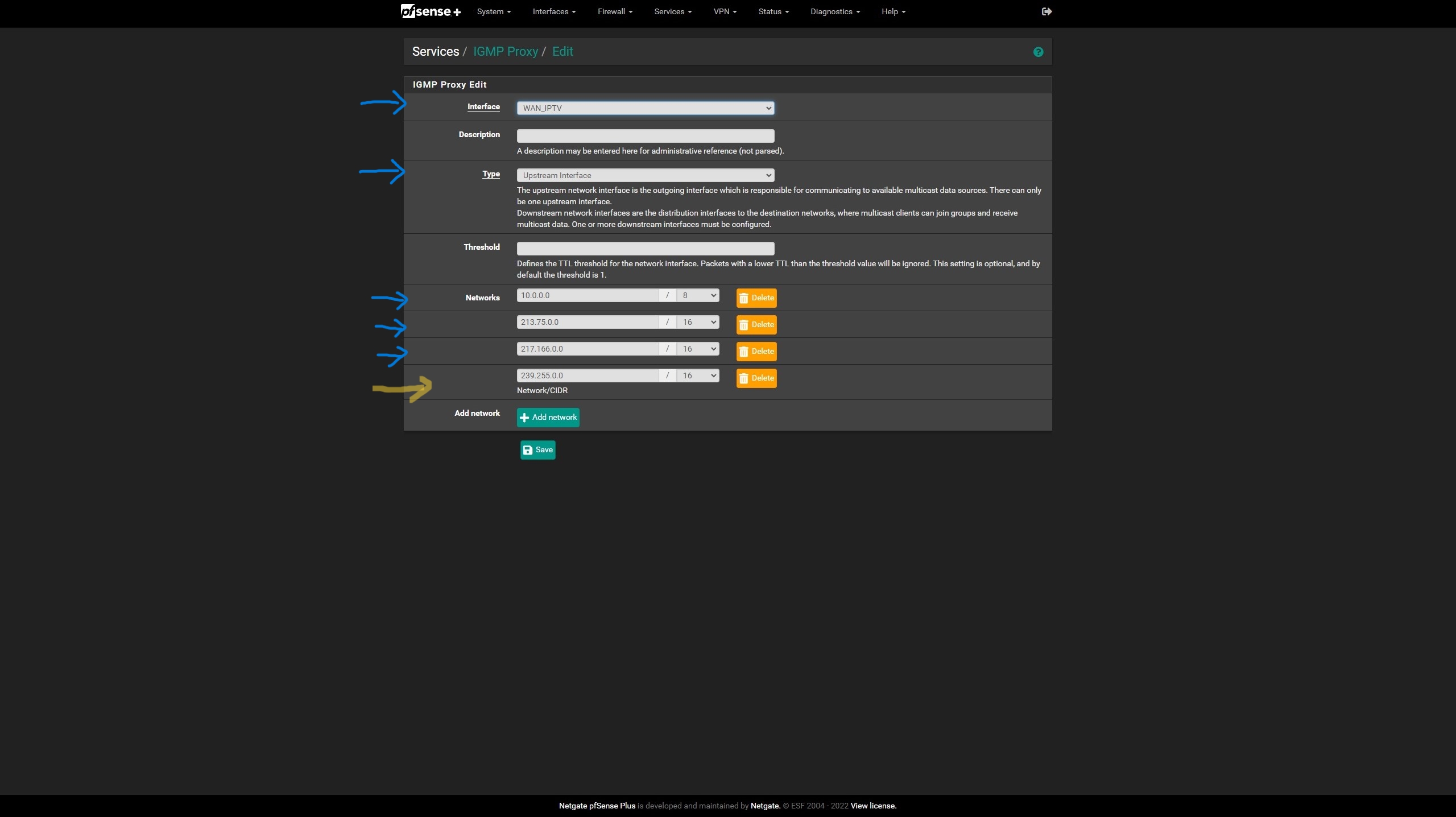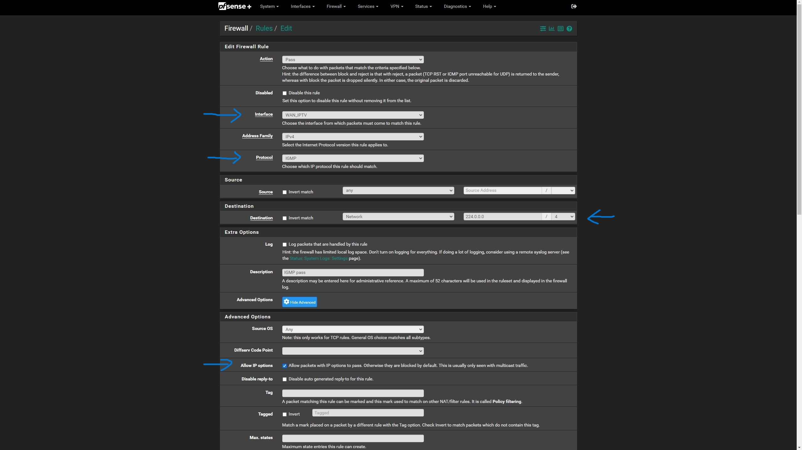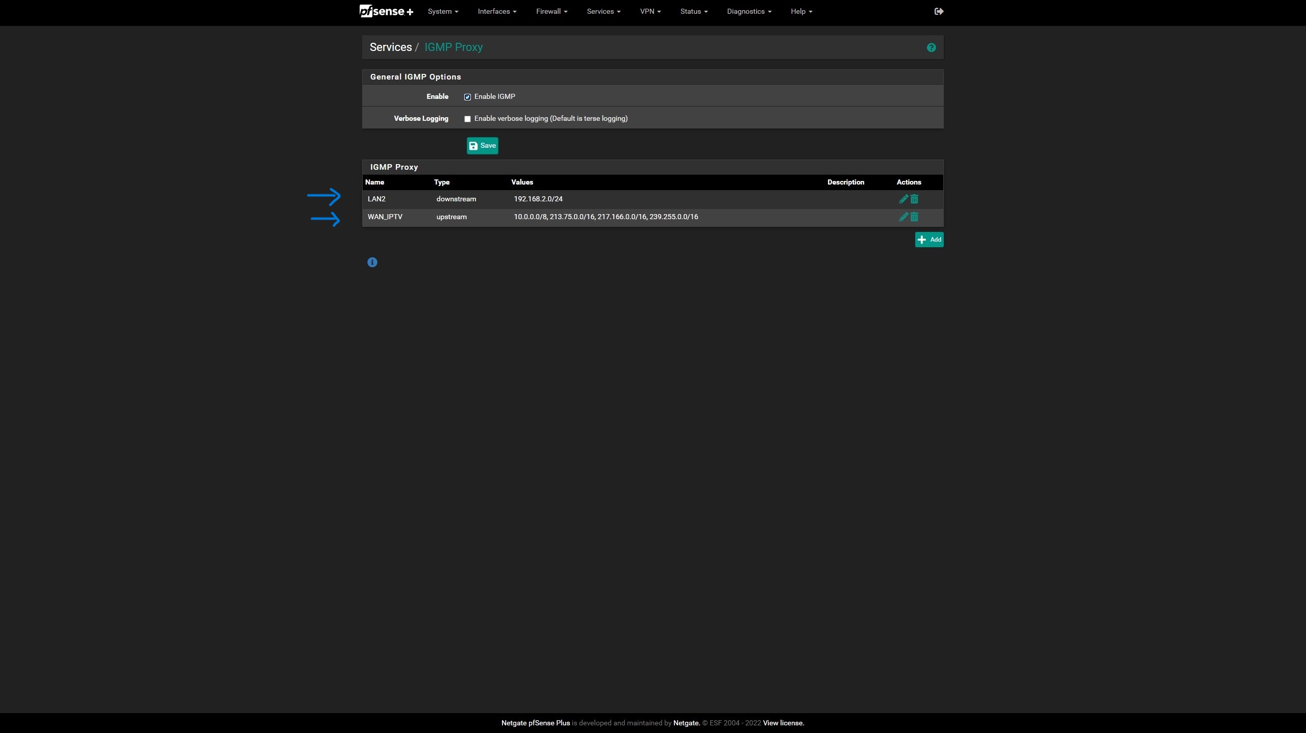 Igmp is, in tegenstelling tot Opnsense standaard geïnstalleerd