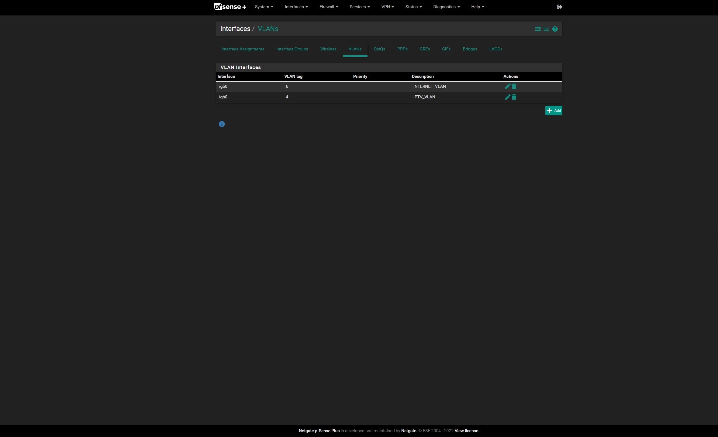 Als je nu terug zou gaan naar Interfaces - Assignments, zou je vlan 6 weer kunnen assignen aan WAN. Doe dit dus niet, vandaar dat ik zei NIETS anders assignen