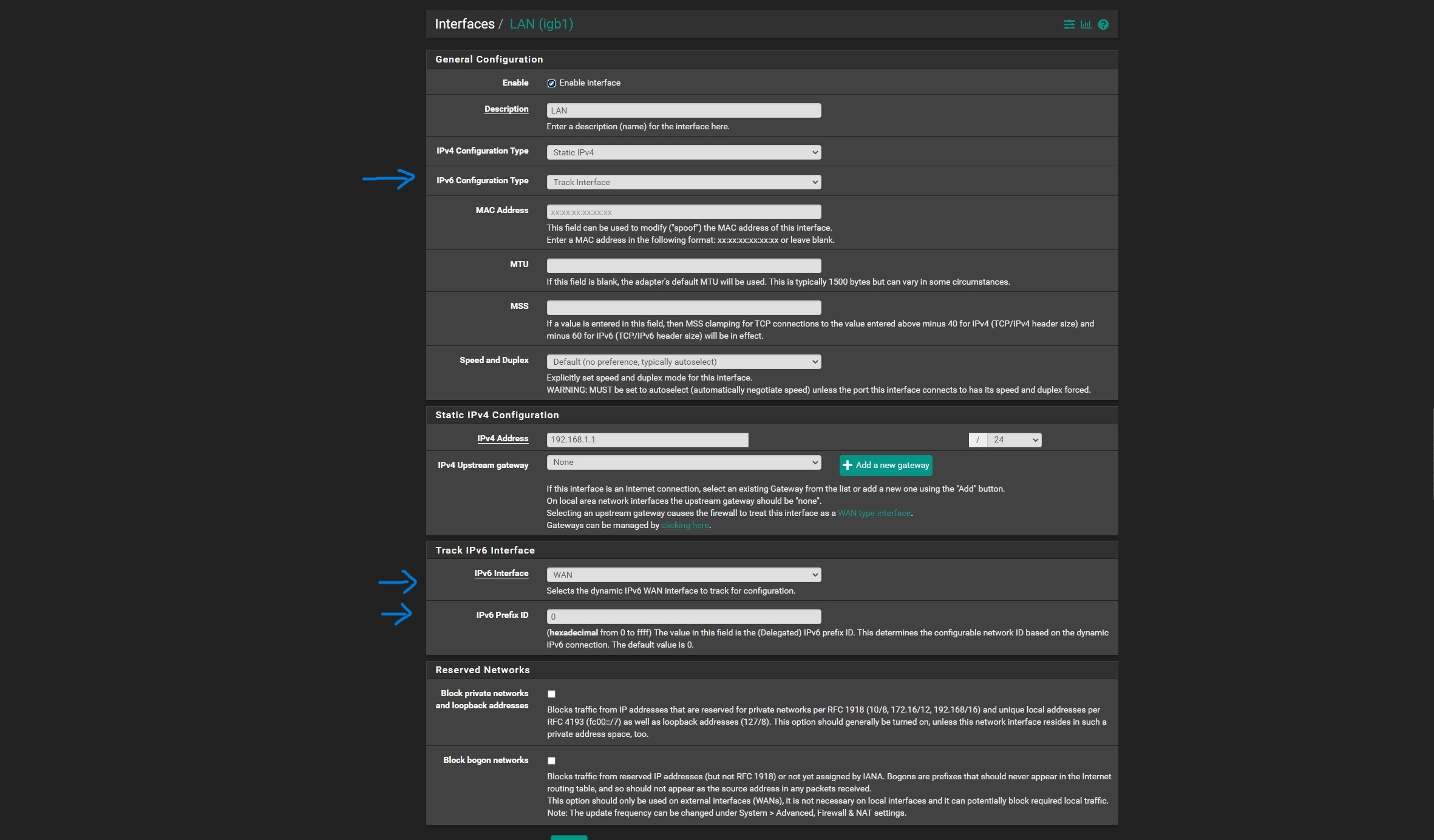 Mocht je maar 2 ethernet poorten tot je beschikking hebben, pak dan de instellingen van igb0(wan) en igb2(lan2)